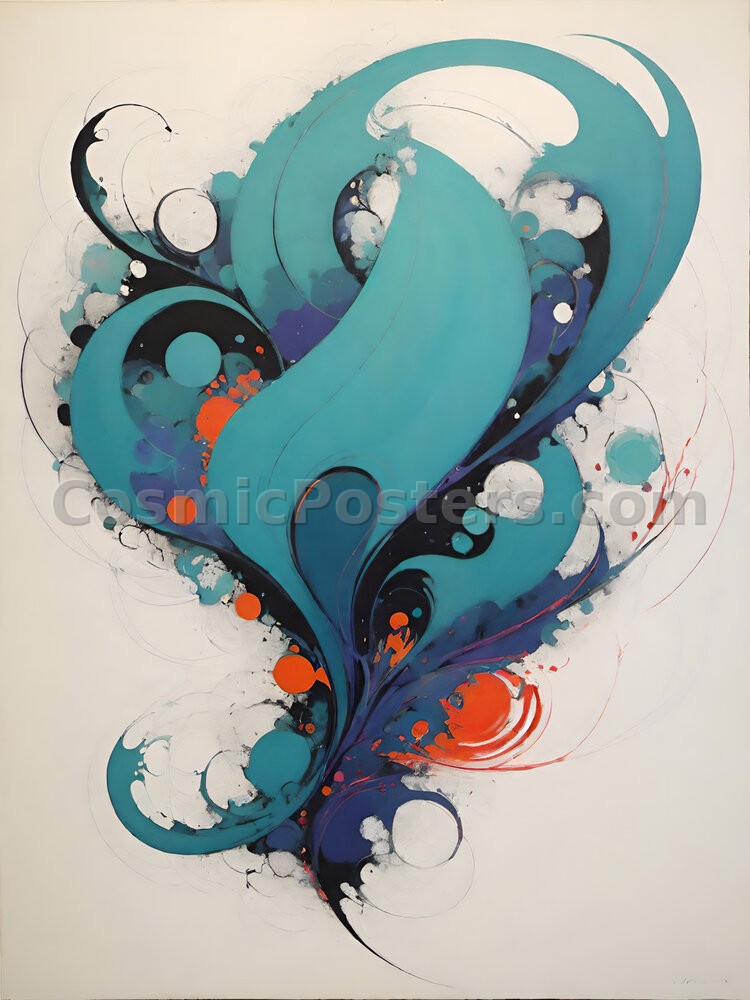Dive into the mesmerizing world of Kinetic Flow 63, where movement and color collide in perfect harmony. This digital artwork is a vibrant dance of teal and navy, punctuated by vivid splashes of orange that breathe life into any setting. It embodies the energy and fluidity of abstract expressionism, drawing the eye and engaging the soul.